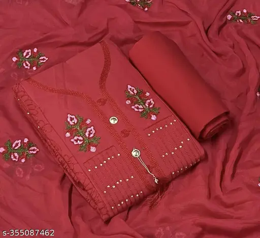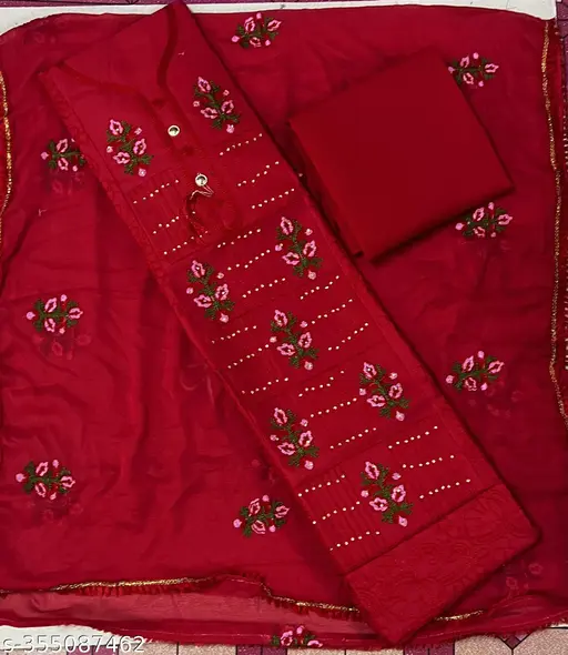 Top Fabric : Polycotton + Top Length: 2 Meters Bottom Fabric : Khadi Cotton + Bottom Length: 2 Meters Dupatta Fabric : Chiffon + Dupatta Length: 2 Meters Lining Fabric : No Lining Type : Un Stitched Pattern : Embroidered Net Quantity (N) : Single STHIT Embrodery Dress material it is hard cotton with thread work Country of Origin : India