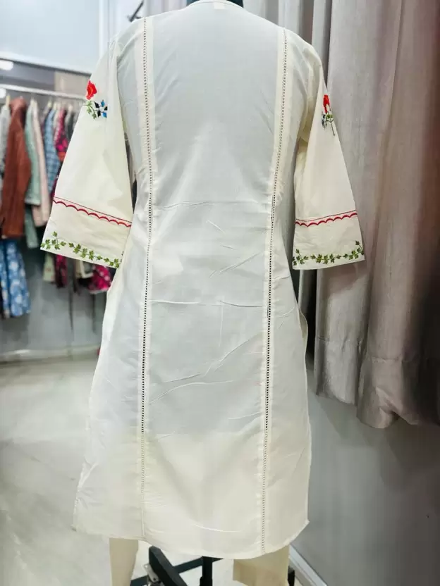 Fabric Pure Cotton Sales Package 1 KURTA, 1 PANT Lining material Cotton Top fabric Cotton Bottom fabric Cotton Top type Kurta Bottom type Pant Pattern Embroidered Color White Occasion Festive & Party, Wedding, Casual Neck Boat Neck Fabric care Hand Wash Other Details Premium Fit, Breathable Cloth This kurta's distinctive style and stunning color will draw a lot of admiring attention. It is made from high-quality cotton that is lightweight and soft against your skin. The pants have a side slit at the hem and a somewhat elasticized waistband for a comfortable fit. The entire outfit is enhanced by a lovely dupatta. traditional designs such as embroidery, prints, or hand-painted motifs that showcase the rich cultur