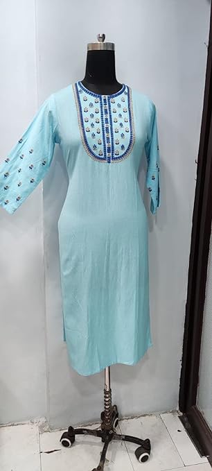 Neck style:Round Neck Pattern:Solid Style:Round kurta Care instructions:Machine Wash Design name:Solid Material type:Rayon Care Instructions: Machine Wash Fit Type: Regular Print and Fabric : rayon Cotton Solid Fabric. Color Declaration : There Might Be Slight Variation In The Actual Color Of The Product Due To Different Screen Resolutions. all occation : this kurta is all occasition type kurta to wear it easily and comforatable for all day.