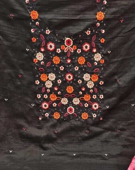 Dupatta length: 2.15 m Package contains: 1 top wear fabric, 1 bottom wear fabric, 1 dupatta Dry clean Topwear fabric length: 2 m Cotton Bottomwear fabric length: 2 m Net Qty:1 N Women's Dress Material