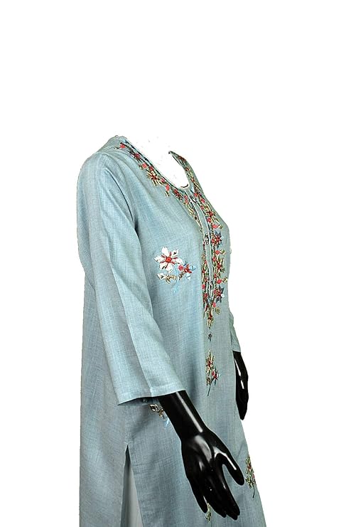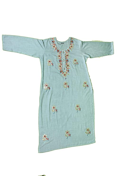 Material composition:Rayon Sleeve type:3/4 Sleeve Length:Calf Length Neck style:Round Neck Pattern:Solid Style:Straight Country of Origin:India