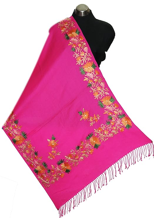 Material composition:Wool Care instructions:Dry Clean Only Style:Embroidered Pattern:Paisley Country of Origin:India 38 x 80 inches - Weight - 300 gms. Item Weight:300 g Generic Name:shawl This item, titled, 'Embroidered Dark Pink Kashmiri Woolen Shawl for Ladies', belongs to the collection of Shawls from our wide range of Textiles.