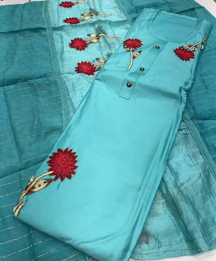 Type:Salwar Suit Material Sales Package:1 Top,1 Bottom,1 Duppata Ideal For:Women Occasion:Party & Festive Fabric Care:Hand wash Bottom Length:2.5 m Dupatta Length:2 m - 2.5 m Top Length:2.25 m Color:Light Blue Fabric:Cotton Pattern:Embroidered Stitching Type:Unstitched