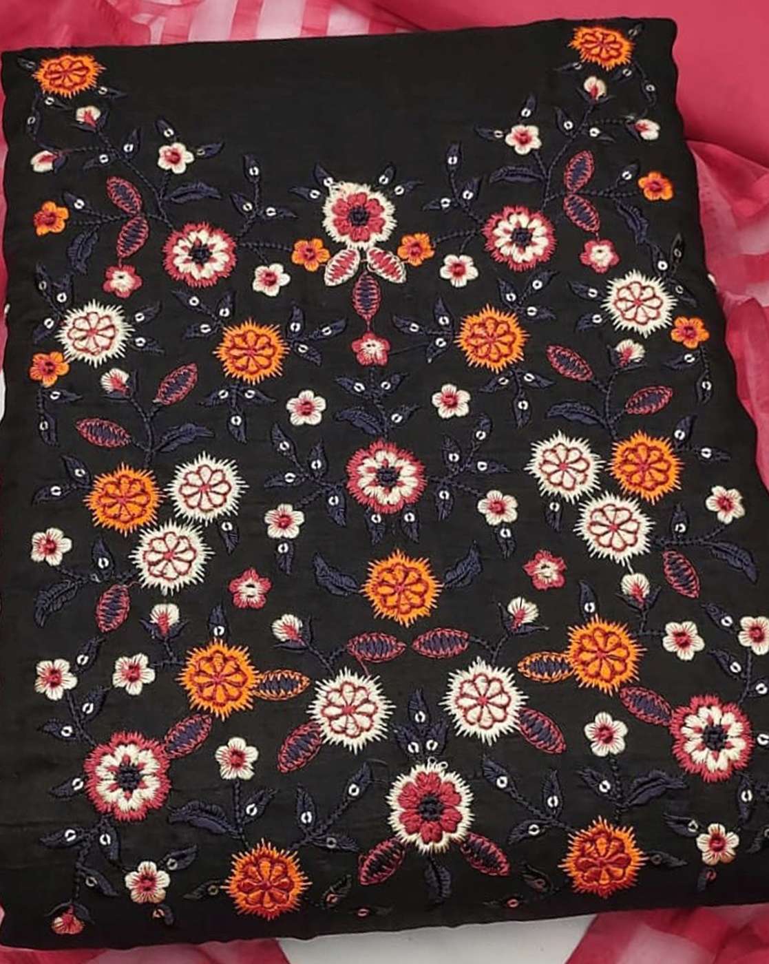 Dupatta length: 2.15 m Package contains: 1 top wear fabric, 1 bottom wear fabric, 1 dupatta Dry clean Topwear fabric length: 2 m Cotton Bottomwear fabric length: 2 m Net Qty:1 N Women's Dress Material