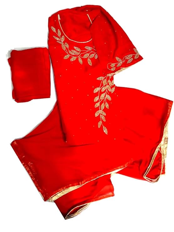 Type:Salwar Suit Material Sales Package:1 top, 1 bottom, 1 dupatta Ideal For:Women Occasion:Casual Fabric Care:Hand wash Bottom Length:2.20m Dupatta Length:2 m - 2.5 m Top Length:2 m Fabric:Georgette Pattern:Embroidered Stitching Type:Unstitched